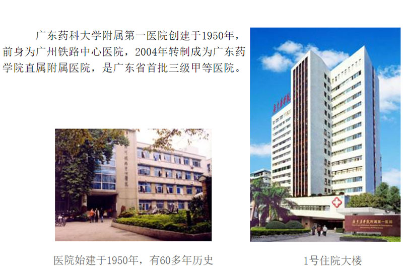 广东药科大学附属第一医院创建于1950年,前身为广州铁路中心医院,2004年转制成为广东药学院直属附属医院,是广东省首批三级甲等医院。南方医科大学珠江医院选择贺众牌饮水机南方医科大学珠江医院是国家重点大学南方医科大学(原第一军医大学)的第二附属医院、第二临床医学院,坐落在广州市美丽的珠江南畔,是一所集医疗、教学、科研为一体的三甲综合性医院。